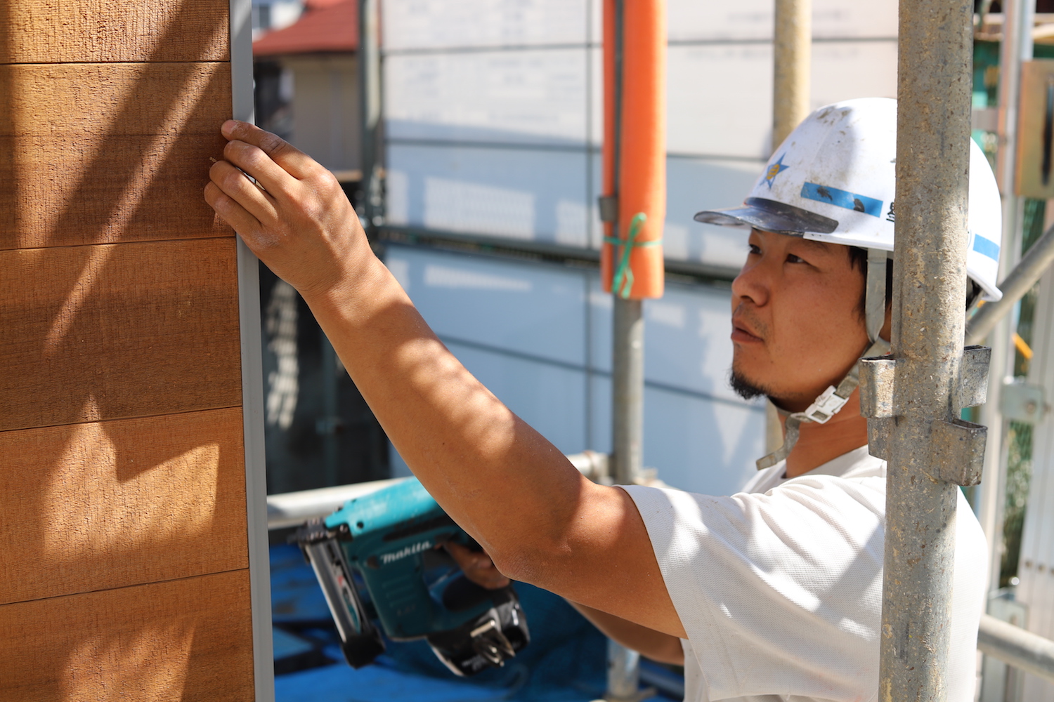 数ミリのモザイクタイルからブリックタイル、そしてリフォーム用の調湿タイル等、幅広い実績を持ちます。星工業はタイル貼り職人も専属の職人を抱えており、タイル下地から仕上げまでトータルで施工ができます。